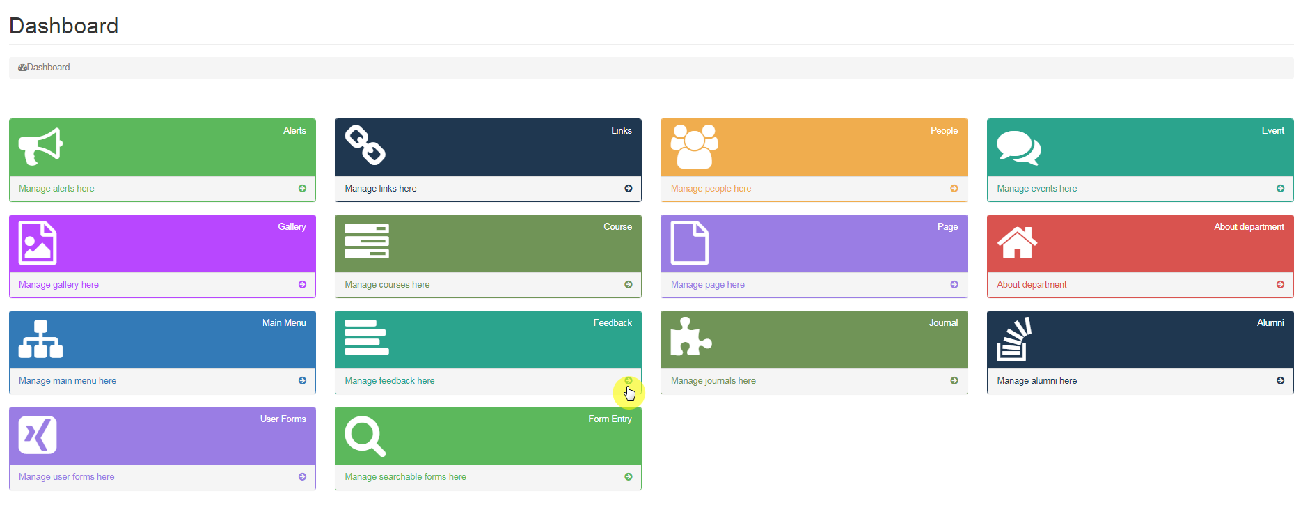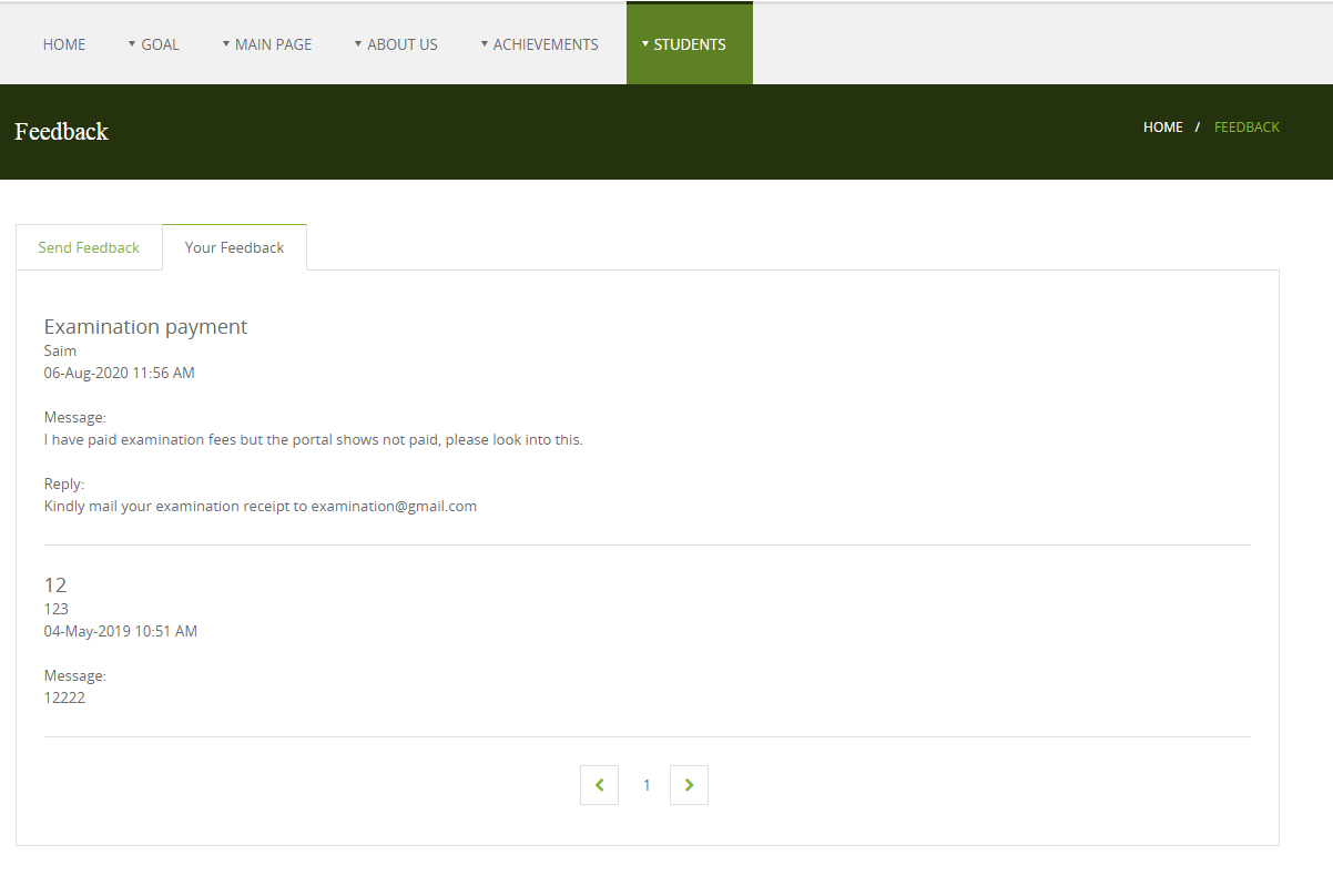 In this section of content Management System, the user can see, reply and publish feedback that has been submitted by the student on the website.