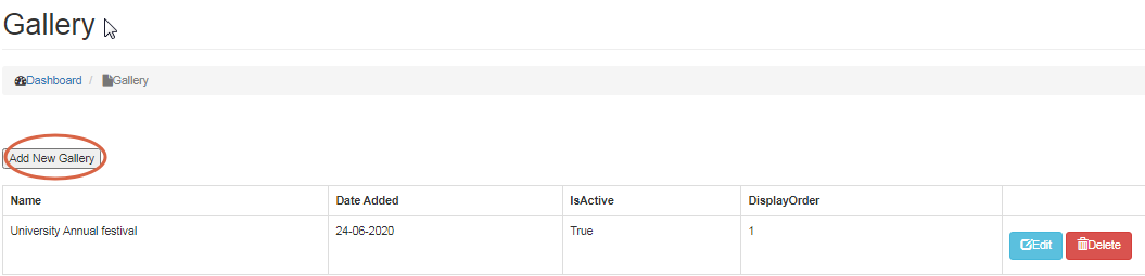 In Gallery section, you will be able to add Gallery by clicking on Add new Gallery button so that you can proceed with other details.