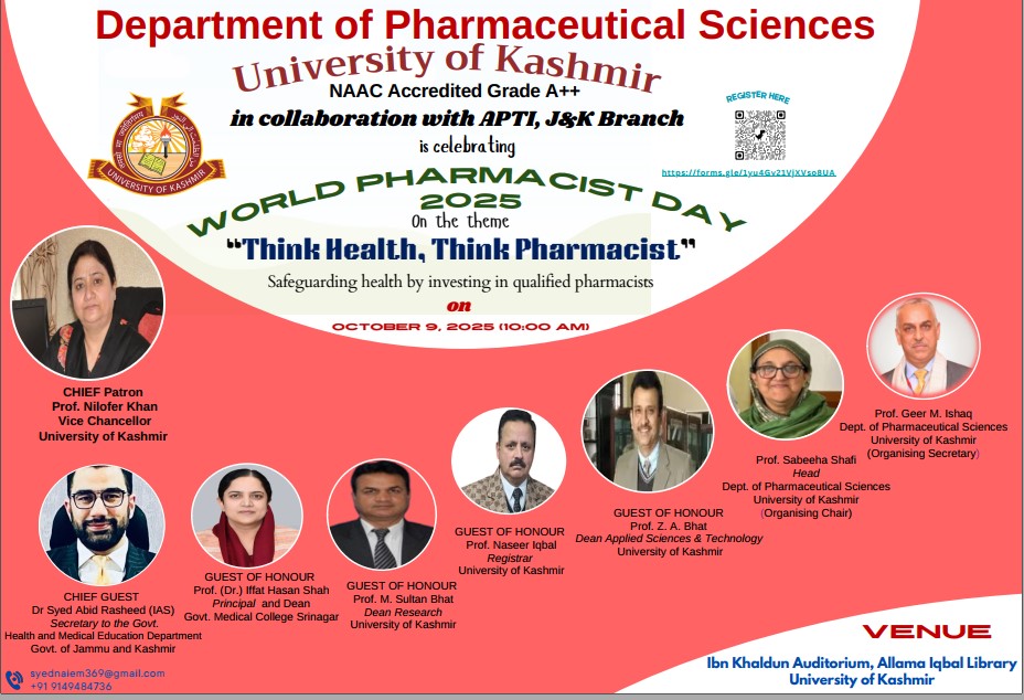National Science Day is celebrated in India on February 28 each year to mark the discovery of the Raman effect by Indian physicist Sir C. V. Raman on 28 February 1928. For his discovery, Sir C.V. Raman was awarded the Nobel Prize in Physics in 1930. We welcome all to join us in celebrating the 2024 National Science Day, at University of Kashmir.